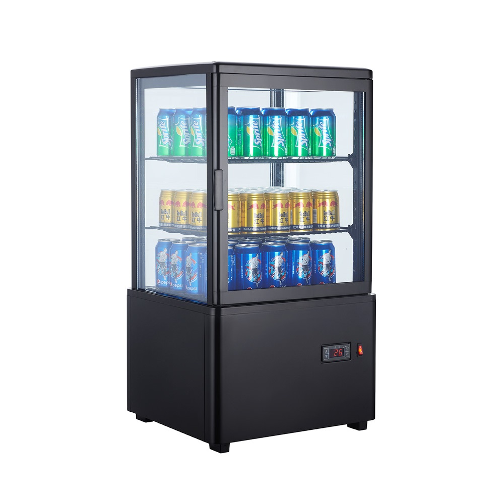 Bemutató hűtővitrin négy oldalról üvegezett 58 liter fekete ipari