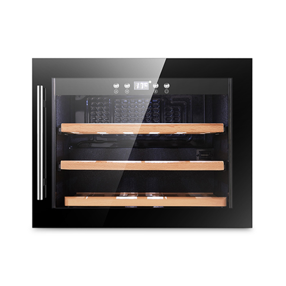 Borhűtő vitrin egyzónás fekete kerettel 60 liter 3 fa polcos beépíthető ipari