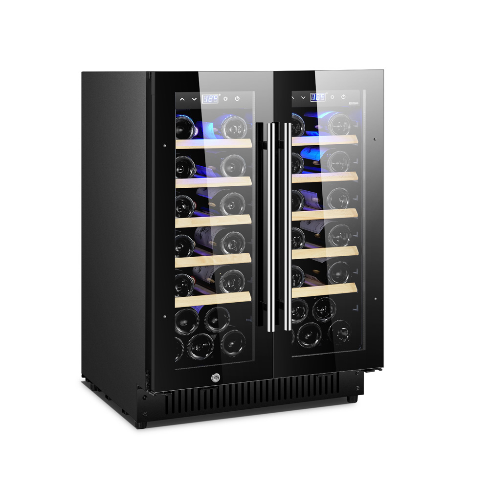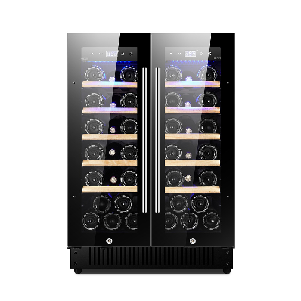 Borhűtő vitrin kétajtós kétzónás 128 liter 10 fa polcos beépíthető ipari