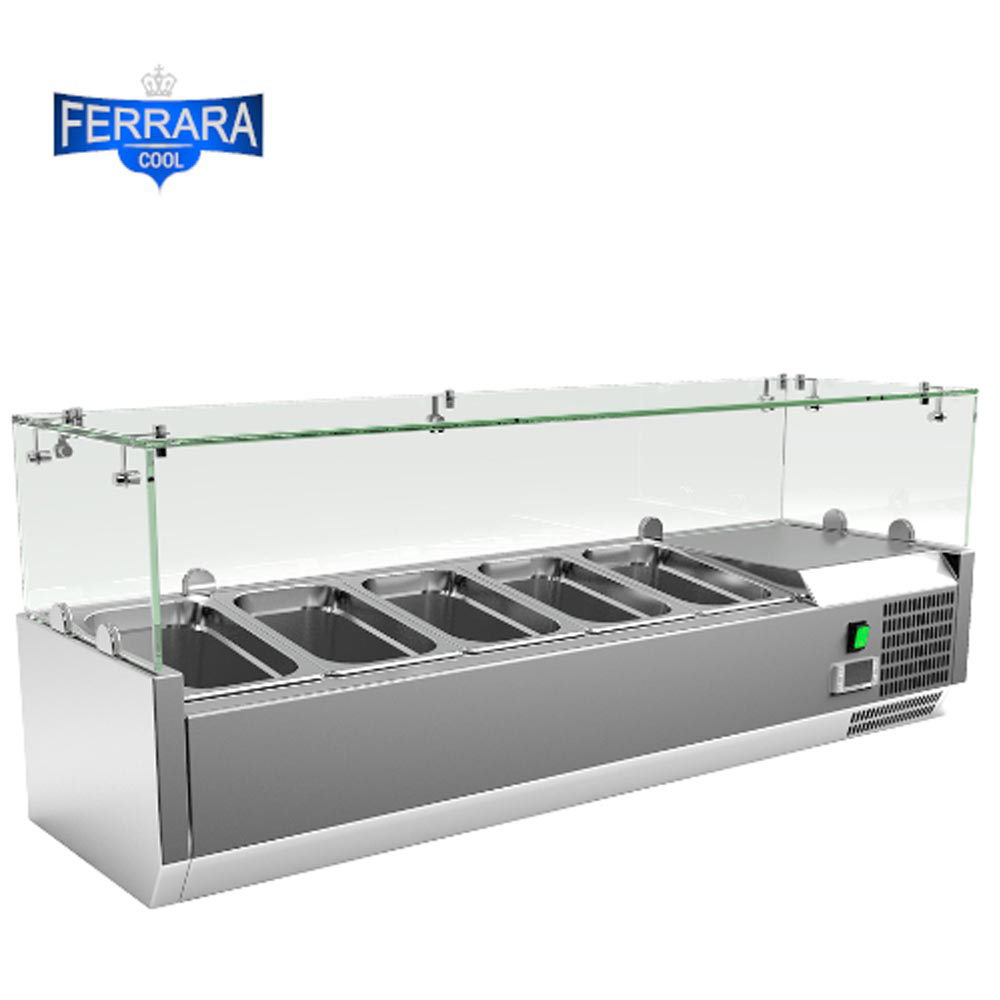 Feltéthűtő ipari 160 cm-es 7xGN1/4-es, leheletvédő üveggel