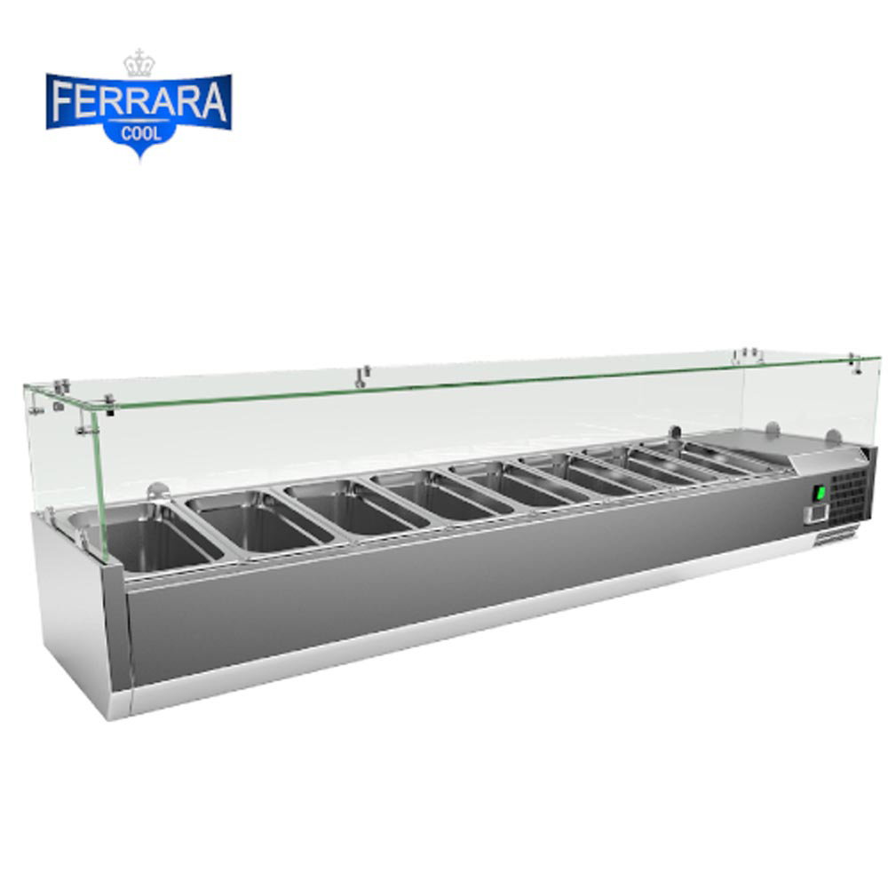 Feltéthűtő vendéglátó ipari 180cm-es 8xGN1/3 vagy 16XGN1/6-os, leheletvédő üveggel