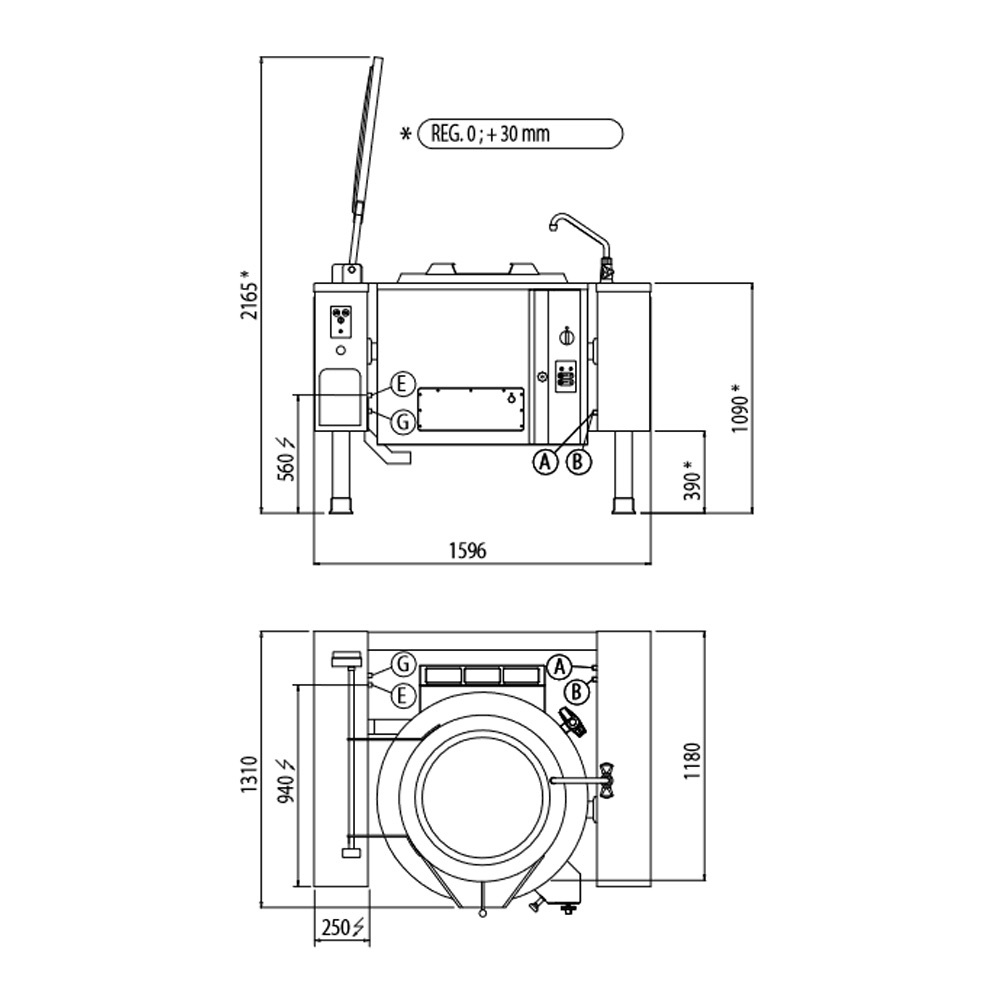 Főzőüst gázüzemű billenő 200 liter 900sr