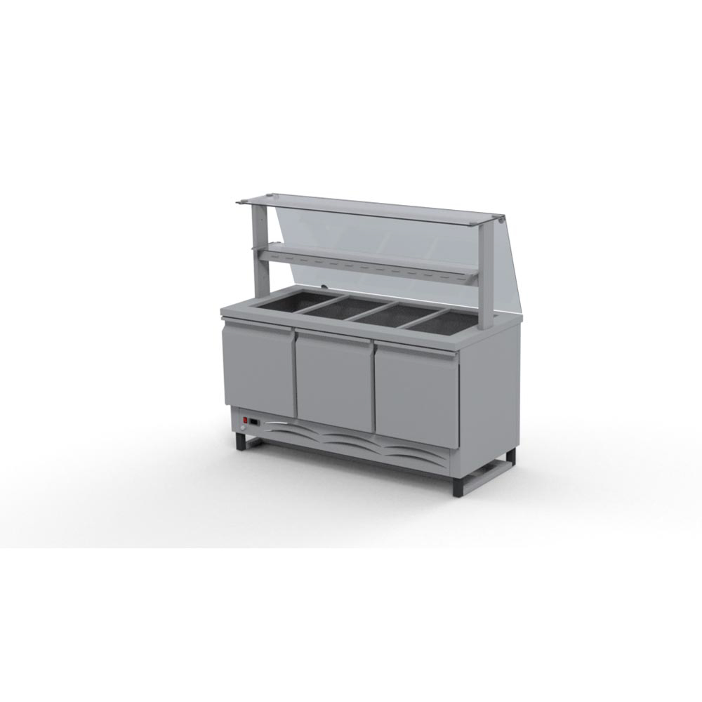 Hűtőpult 4xGN1/1 alsó hűtött tárolóval egyenes üveges felépítménnyel köztes üvegpolccal 1500 mm ipari