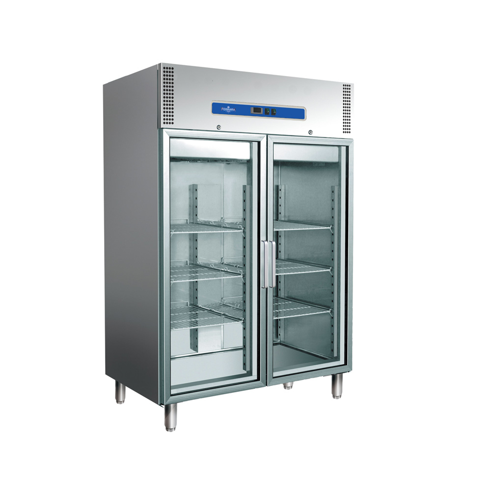 Hűtőszekrény álló 1200 literes dupla üvegajtós rozsdamentes ipari háttérhűtő