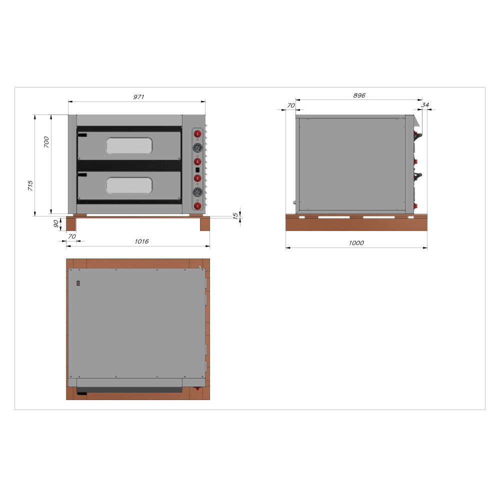 Pizzakemence sütő kétaknás 4+4-es ipari