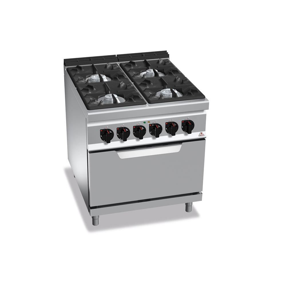 Tűzhely gázüzemű 4 égős elektromos sütővel főzősorba illeszthető ipari 900Sr