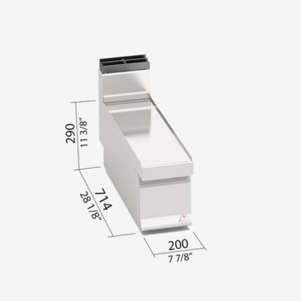Technikai adatok: Méret: 200×700×290 mm Termék jellemzők: Rozsdamentes acélból készült, pultra tehető semleges elem. Egyszerű kialakítás. Főzőblokkba illeszthető. Alépítmény