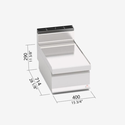 Technikai adatok: Méret: 400×714×290 mm Termék jellemzők: Rozsdamentes acélból készült, pultra tehető semleges elem. Egyszerű kialakítás. Főzőblokkba illeszthető. Alépítmény